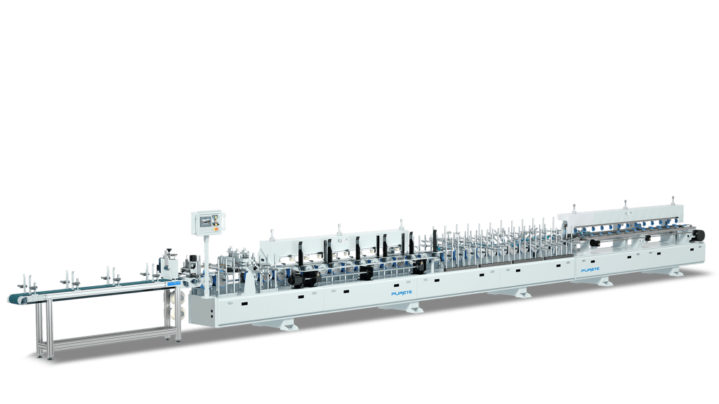 The B3 profile folding machine line is a specialized wrapping production solution designed for precision grooving, gluing, and bending in veneer board surface treatment. It is particularly effective for PET-laminated boards, enabling smooth folding and molding processes with high accuracy and efficiency. This advanced system follows a streamlined workflow: veneer boards (especially pasted PET boards) are grooved, adhesive is evenly sprayed, core boards are applied, and the material is bent and molded into the desired profile. Engineered for industrial-scale applications, the B3 line ensures consistent quality, reliable performance, and increased production capacity for furniture, decorative panels, and architectural materials.