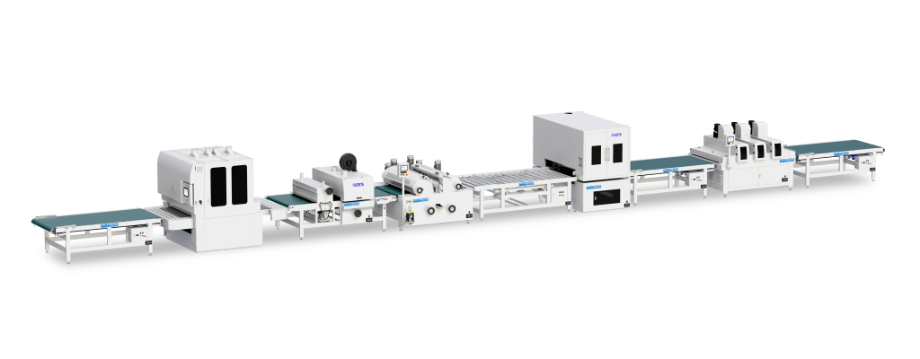 The M2 3D embossing production line is engineered to deliver premium decorative finishes with realistic 3D effects. By applying a uniform layer of UV paint to the flat surface of the workpiece and pressing it with a decorative film, the system transfers intricate textures and patterns onto the surface. This process produces stunning embossed effects with high precision, durability, and consistency. The complete line is composed of a sanding machine, polishing machine, double-roller coating machine, advanced 3D embossing machine, and a three-lamp UV curing system. Designed for industrial-scale applications, the M2 production line ensures high efficiency, superior surface quality, and versatile design possibilities for furniture, flooring, and decorative panels.