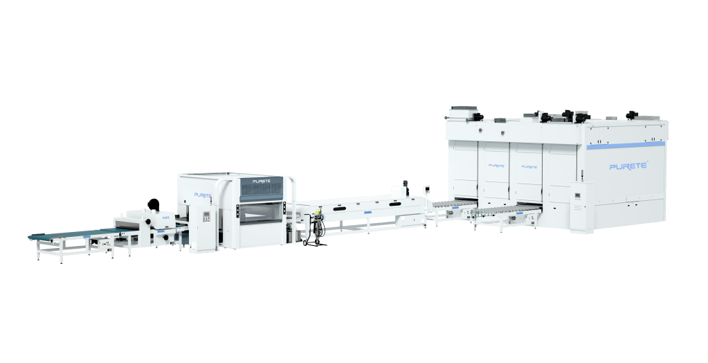 The P3 WB & Reciprocating Spraying Line with 88-Shelf Vertical Drying Oven features a compact vertical quick-drying design, making it ideal for water-based coatings that require extended drying time after spraying. Its vertical drying structure saves floor space while ensuring the coated workpieces are completely cured and ready for packaging. This production line provides efficient coating performance, uniform film quality, and stable temperature control, suitable for various furniture and decorative panel applications. Composed of: Dust cleaner, reciprocating spray machine, and vertical drying oven.