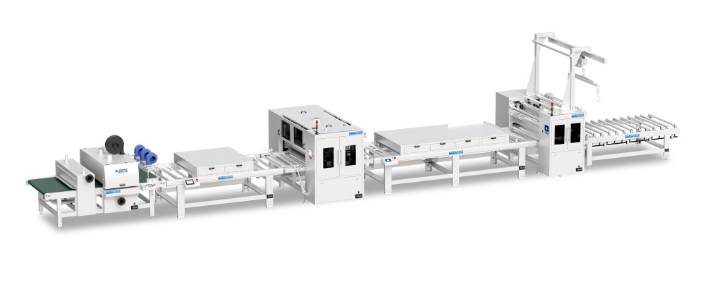 The T1 Automatic Laminating Production Line is designed for high-efficiency lamination of both sheet and coil materials, such as PET, PETG, PP, PVC, CPL, HPL, acrylic, aluminum foil, and SPC panels. It provides precise temperature and pressure control to ensure strong adhesion, bubble-free surfaces, and durable decorative finishes. This automatic PUR laminating line supports large-scale continuous production, offering superior flexibility for different substrate types and coating materials. It is widely used in furniture manufacturing, interior wall panels, cabinets, and decorative board production. Composed of: Double-surface dust cleaner, infrared preheating machine, gluing machine, sheet feeding station, and laminating machine.