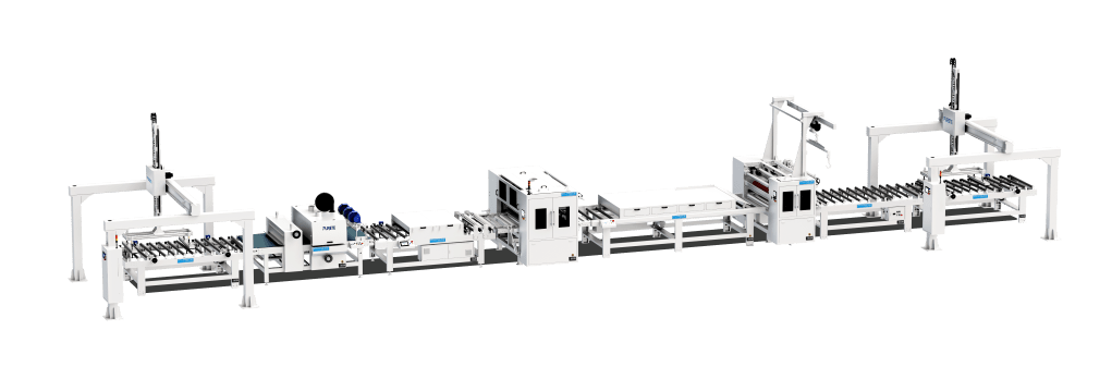 The T2 Automatic Laminating Production Line is designed for high-efficiency, automated panel lamination, integrating a gantry loading and unloading system to significantly reduce manual handling and labor intensity. This intelligent setup improves production efficiency, safety, and operational precision, making it ideal for continuous large-scale manufacturing. The line supports PUR and hot-melt adhesive lamination for various substrates such as MDF, plywood, PET, PVC, and decorative sheets. It ensures smooth surface finishes, strong bonding, and uniform coating quality—perfect for furniture, doors, and interior wall panels. Composed of: Gantry loading, polishing and dust removal system, gluing machine, laminating machine, and unloading system.