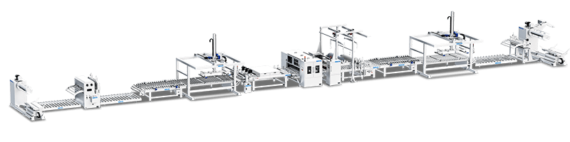 The T4 Roll-to-Roll Laminating Production Line is specifically designed for laminating various decorative films and functional materials onto steel, stainless steel, and aluminum plates. With its continuous roll-to-roll processing and precise PUR or hot-melt adhesive coating, this line achieves excellent surface bonding, high flatness, and durable decorative effects for metal substrates. This production line is ideal for manufacturers of metal decorative panels, elevator panels, appliance surfaces, interior wall cladding, and aluminum composite materials. Its fully automated workflow ensures high efficiency, stable quality, and reduced manual handling, making it well-suited for large-scale industrial applications. Composed of: Aluminum product unwinding machine, feed shears, alignment roller conveyor, sheet loading gantry, infrared preheating machine, gluing machine, laminating machine, long-side trimming machine, alignment roller conveyor, board flipping machine, and unloading system.